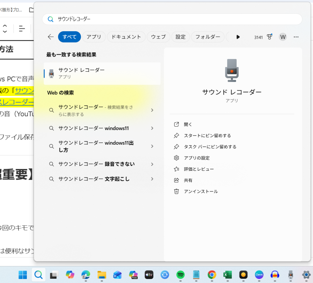 標準搭載の「サウンドレコーダー」(Windows 11)または