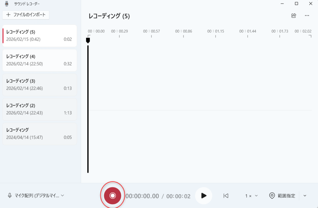 サウンドレコーダーを開いてレコーディングしよう!!