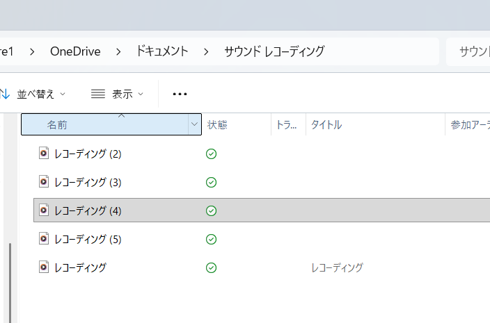 録音終了すると以下のフォルダに保存される(mp4ファイル)