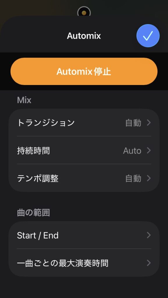 - セットリストの予習: 自分で作ったプレイリストをオートミックスで再生し、「この曲順で盛り上がるか」「曲同士の相性は良いか」といった、セットリスト全体の流れを事前に確認するのにも役立ちます。