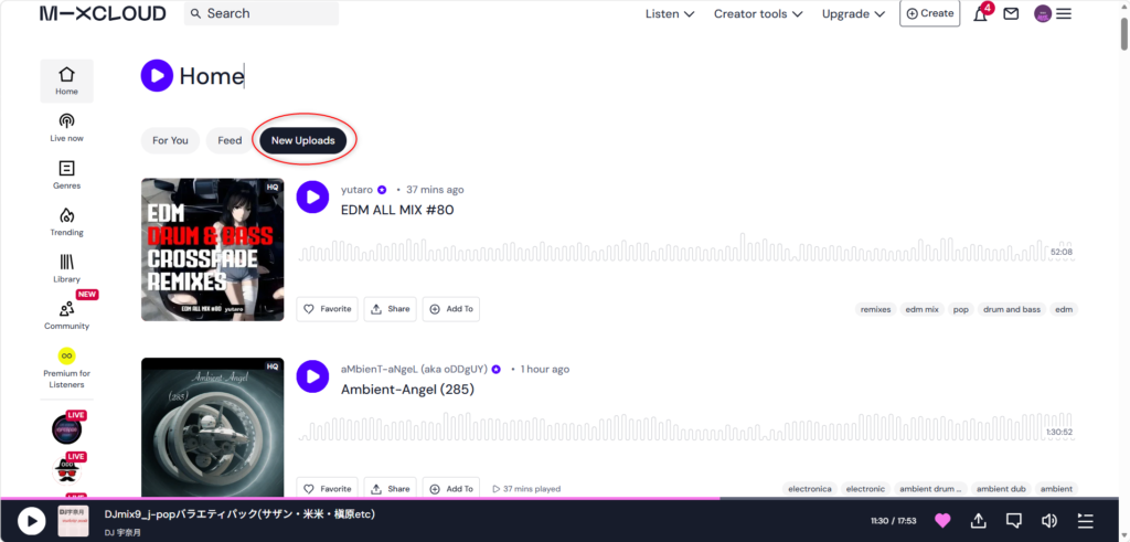 Mixcloudでは自分がアップロードした後、視聴者の