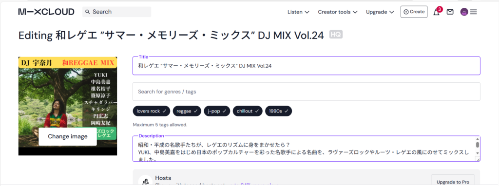 アップロード入力画面はMIXの再生数を左右する重要ポイント。