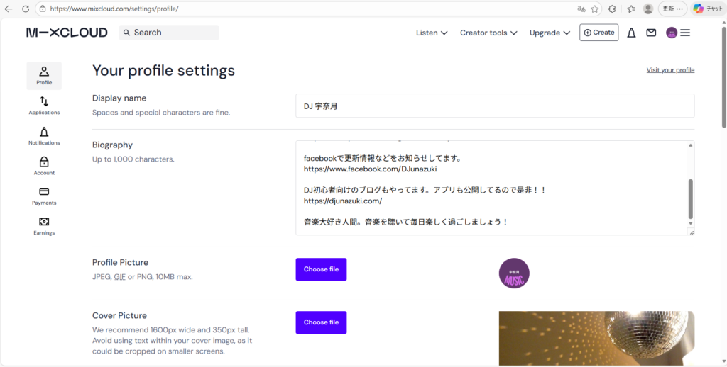 まずはプロフィールを作成して、それからmixをアップロードする手順を説明しますね