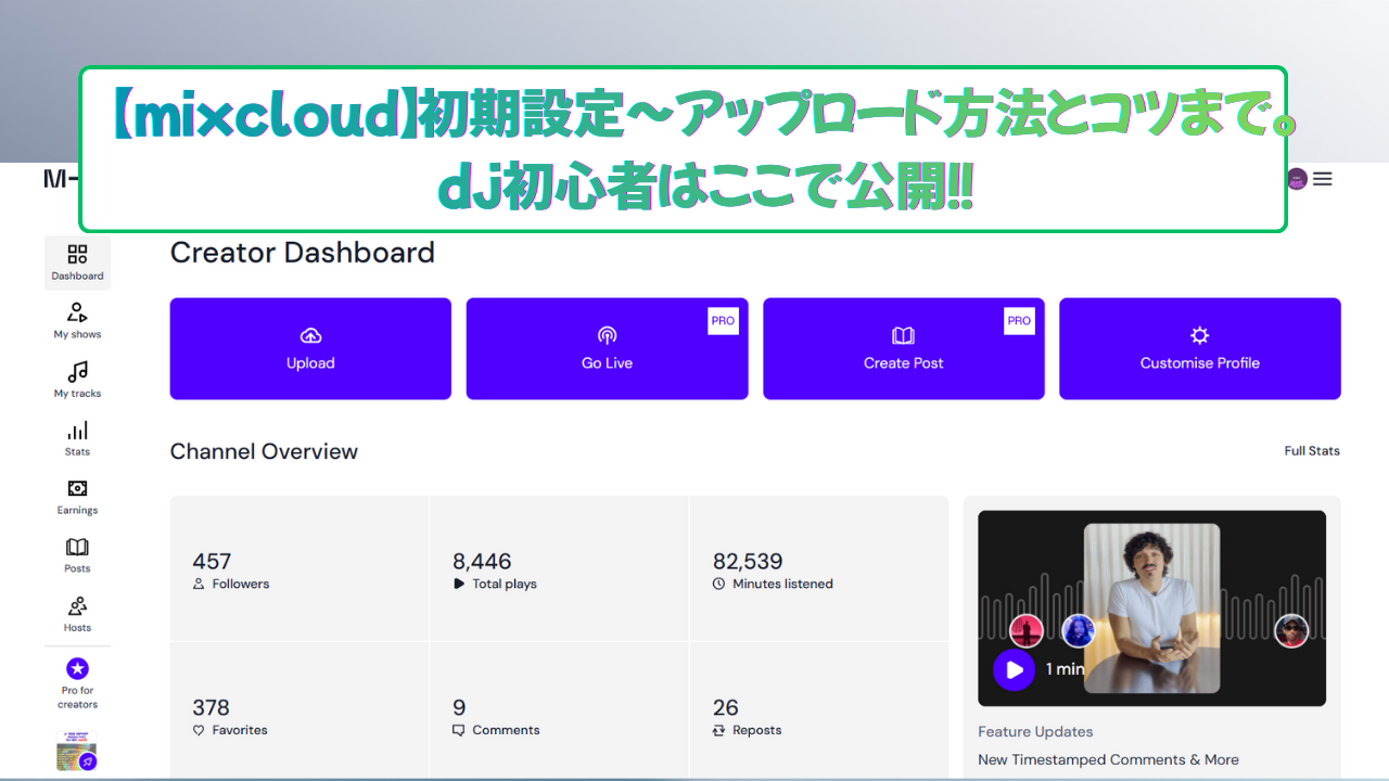 Mixcloud歴10年の私が、その魅力をナビゲートします!有料プランも使ってましたが今回は無料プランでの使い方をします。よろしければ参考までに私がアップロードしたmixをご視聴ください♪ ↓↓